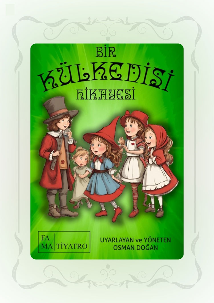 Bir Külkedisi Hikayesi Tema BaşlığıAkran Zorbalığı, Tutumluluk Bilim ve Hayal Gücü Oyun Adı Bir Külkedisi HikayesiYazar Osman DoğanYaş Grubu 4-10 YaşSüre 30 dk Karakterler KülkedisiŞapkacıKırmızı Başlıklı KızFareli Köyün KavalcısI Kısa Konu Özeti Masal karakterleri Külkedisi, Kırmızı Başlıklı Kız ve Kavalcı, Şapkacı'nın atölyesine gelir. Her biri farklı beklentilerle gelirken, oyun boyunca tutumluluk, geri dönüşüm ve paylaşım gibi değerleri öğrenirler. Şapkacı'nın oyunları ve deneyleri sayesinde, özellikle Kırmızı Başlıklı Kız'ın karakterinde değişim yaşanır ve dostluk bağları güçlenir. Hedeflenen Pedagojik Kazanımlar Tutumlu olmanın önemi ve kaynakları verimli kullanma bilinci Bilimsel düşünceye teşvik ve hayal gücünün geliştirilmesi Empati, iş birliği ve arkadaşlık değerlerini tanıma Akran zorbalığı ve kötü davranışların sonuçlarını fark etme ve olumlu değişim