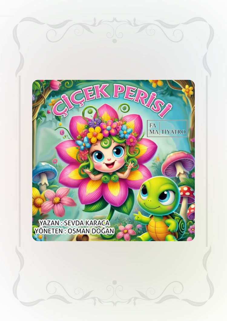 Çiçek Perisi Tema BaşlığıDoğa Sevgisi, İyilik, Arkadaşlık, Değerler Eğitimi Oyun Adı Çiçek PerisiYazar Sevda KaracaYaş Grubu 4-10 YaşSüre 30 dk Karakterler Nanya (Çiçek Perisi)Püskül (Kaplumbağa)Odiş (Paragöz)Lupe (Odiş'in yardımcıSI)Dış Ses Kısa Konu Özeti Nanya adındaki Çiçek Perisi, doğayla konuşabilen sevgi dolu bir varlıktır. Ormanda huzur içinde yaşarken, peri tozlarını ele geçirip zengin olmak isteyen Odiş ve yardımcıISı Lupe ormana girer. Onların niyetini fark eden Püskül (kaplumbağa), Nanya'yı uyarır. Oyun boyunca çeşitli entrikalar, mizahi sahneler ve ders niteliğinde karşılaşmalar olur. Lupe sonunda iyiliği seçerken, Odiş de pişmanlık duyar. Finalde dostluk ve doğa sevgisi kazanır. Hedeflenen Pedagojik Kazanımlar Doğa sevgisi ve çevre bilinci kazanma İyilik ve kötülük kavramlarını ayırt etme Affetme, özür dileme ve değişim fikrini kavrama Empati, arkadaşlık ve yardımlaşma değerlerini öğrenme