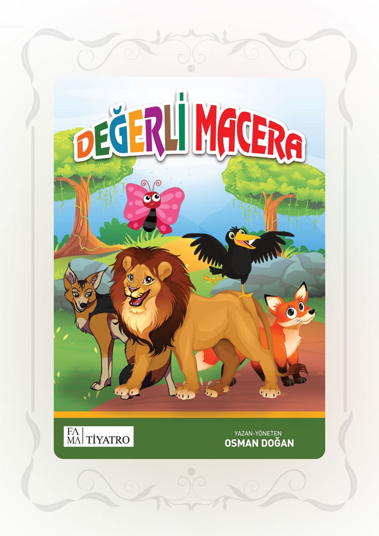 Değerli Macera Tema BaşlığıDeğerler Eğitimi, Liderlik Oyun Adı Değerli MaceraYazar Osman DoğanYaş Grubu 4-11 YaşSüre 30 dk Karakterler AslanKelebekTilkiKargaÇakalKonuşan Çalı Kısa Konu Özeti Tembel bir aslan, bir gün kral olabilmek için kendini geliştirmeye karar verir. Kral olmanın sadece güçle değil, çalışkanlık, cesaret, yardımlaşma ve saygı gibi değerlerle mümkün olacağını öğrenir. 'Bilgelik Taşı'nı ararken dostluk, ihanet ve sorumlulukla sınanır. Gerçek kralın değerleri taşıyan kişi olduğunu fark eder. Hedeflenen Pedagojik Kazanımlar Değerler eğitimi: çalışkanlık, yardımseverlik, saygı, cesaret Liderlik ve sorumluluk bilincini geliştirme Doğa, arkadaşlık ve emek kavramları üzerine farkındalık kazanma