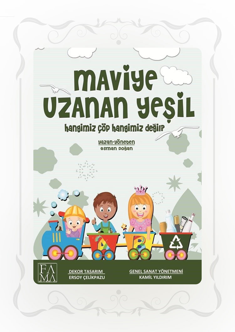 Maviye Uzanan Yeşil Tema BaşlığıGeri Dönüşüm, Çevre Bilinci Oyun Adı Maviye Uzanan YeşilYazar Osman DoğanYaş Grubu 4-11 YaşSüre 30 dk Karakterler KavakMeşePet ŞişeCam ŞişePilGazeteKutu KolaÇöpçü Kısa Konu Özeti Bir okul bahçesinde geçen hikâyede, doğaya atılan çöplerin çöp olmadıkları; doğru şekilde geri dönüştürüldüklerinde yeniden kullanılabilecekleri anlatılır. Ağaç karakterler Kavak ve Meşe ile birlikte Pet Şişe, Cam Şişe, Pil, Gazete ve Kutu Kola'nın dönüşüm hikâyesi çocuklara çevresel sorumlulukları eğlenceli bir dille aktarır. Hedeflenen Pedagojik Kazanımlar Geri dönüşüm bilinci kazandırmak Çevre kirliliğine karşı farkındalık oluşturmak Atıkların doğaya zararları hakkında bilgi edinmek İş birliği ve sorumluluk değerlerini geliştirmek Eğitim ve bilinçlenmenin toplumsal etkisini kavramak