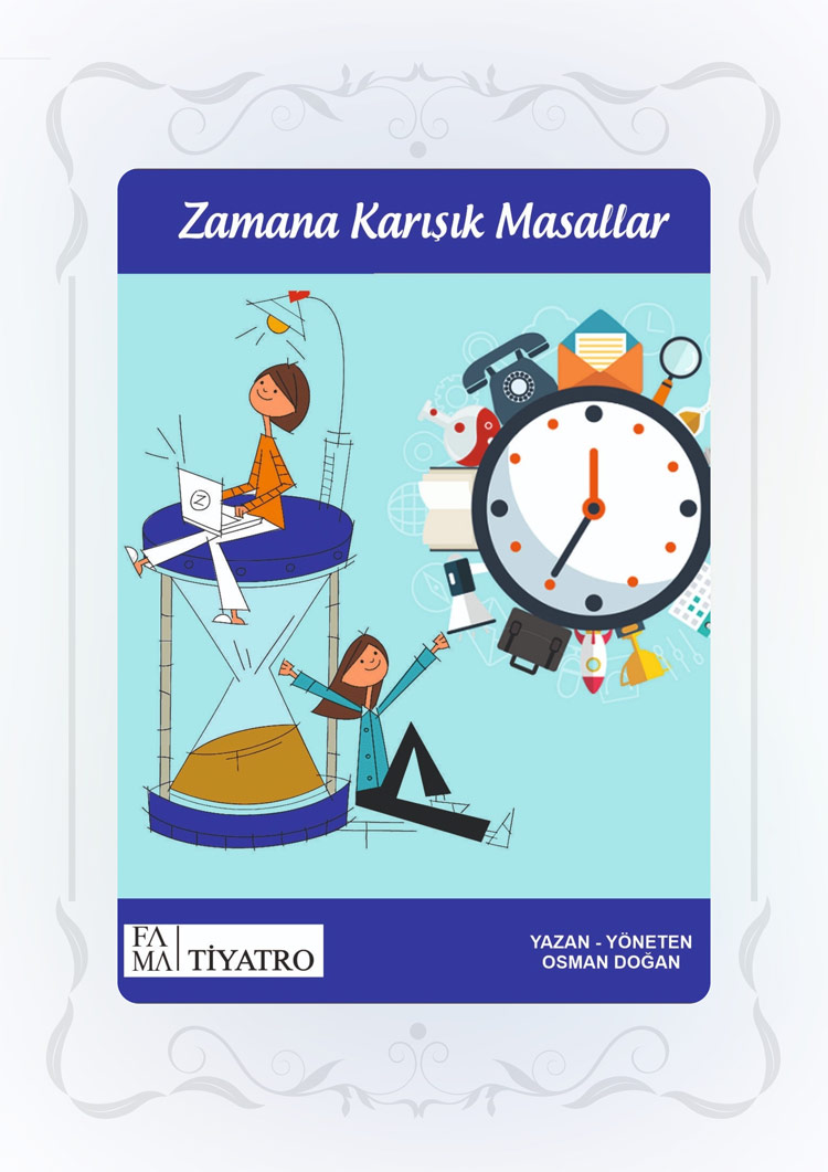 Zamana Karışık Masallar Tema BaşlığıZaman Masallar, Düşünme, Becerileri, Hikâye Anlatımı, Oyun Adı Zamana Karışık MasallarYazar Osman DoğanYaş Grubu 4-11 YaşSüre 30 dk Karakterler Tik (Akrep)Tak (Yelkovan)Masal karakterleriDinozorlarCücelerPamuk PrensesPrensKraliçe Kısa Konu Özeti Tik ve Tak adlı saat karakterleri, zamanı temsil ederek çocuklara hem eğlenceli hem de düşündürücü masallar anlatır. Pamuk Prenses gibi klasik masallar ile özgün bir zaman yolculuğu birleşir. Masalların içinde kaybolan çocuklar; zamanı kullanma, düşünme, konuşma ve susmanın kıymetini keşfeder. Oyun interaktif anlatımlarla zenginleşir. Hedeflenen Pedagojik Kazanımlar Zaman kavramı üzerine düşünme Masal kurgusu ve hikâye anlatımı ile yaratıcı düşünmeyi geliştirme Sabırlı olma, dinleme ve düşünerek hareket etme becerileri kazanma Türkçe dil becerileri ve sözlü anlatım yeteneklerini geliştirme Etkileşimli tiyatro yoluyla aktif katılım sağlama
